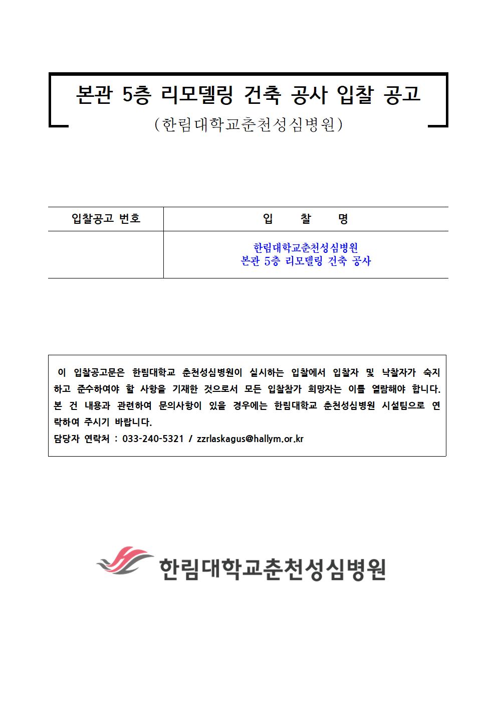 [ÀÔÂû°ø°í] ÇѸ²´ëÇб³Ãáõ¼º½Éº´¿ø º»°ü 5Ãþ ¸®¸ðµ¨¸µ °ÇÃà °ø»ç ÀÔÂû°ø°í